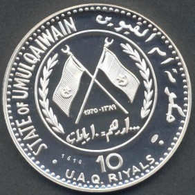 FUJAIRAH 10 Riyals 1970 Visit Pope Paul VI to Philippines AG PROOF BU very rare