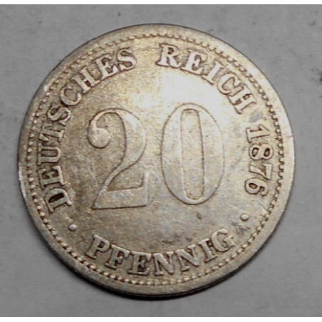 GERMANY EMPIRE 20 PFENNIG 1876D AG