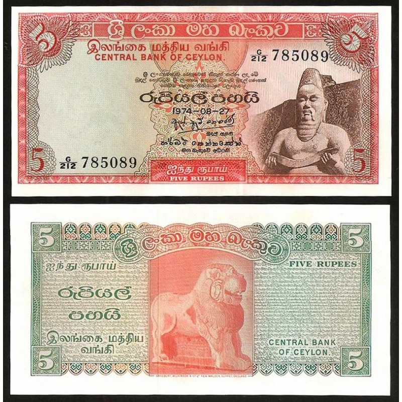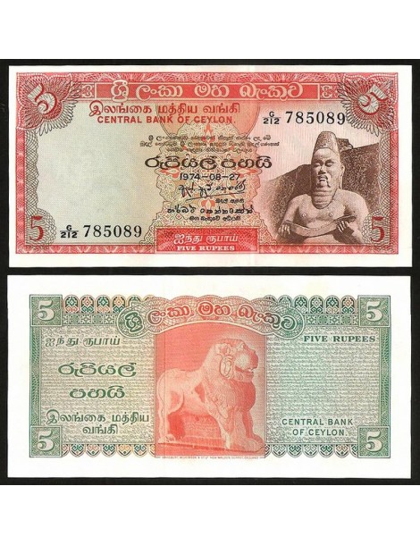 CEYLON 5 Rupees 27.08.1974