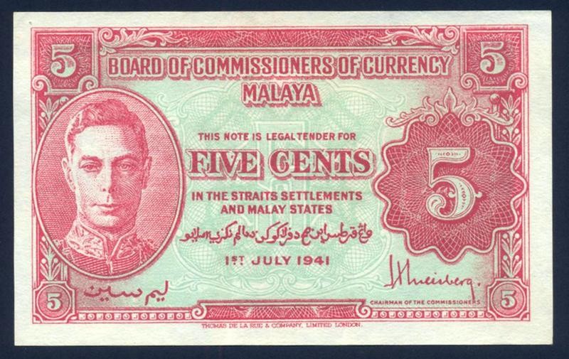 MALAYA 5 Cents 1941