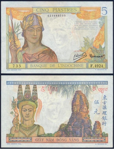 FRENCH INDOCHINA 5 Piastres 1949