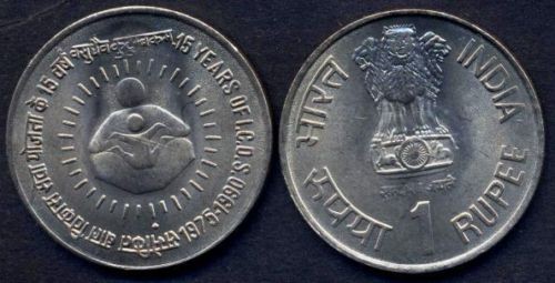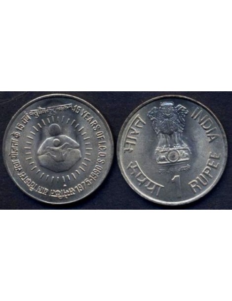 INDIA 1 Rupee 1990 (B) 15° Anniversary of I.C.D.S