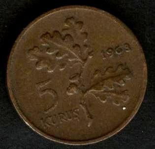 TURKEY 5 Kurus 1963
