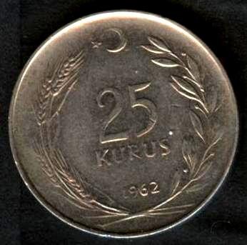 TURKEY 25 Kurus 1962