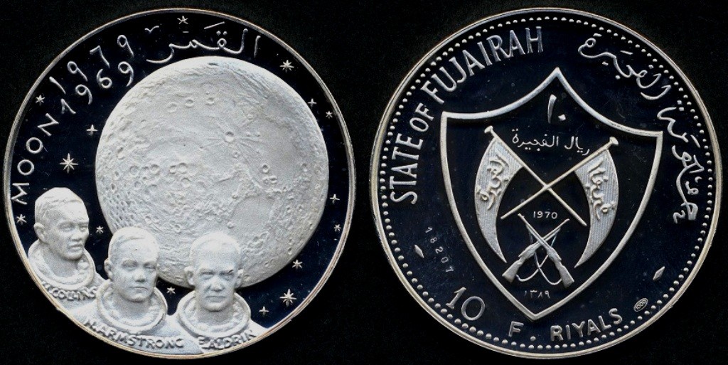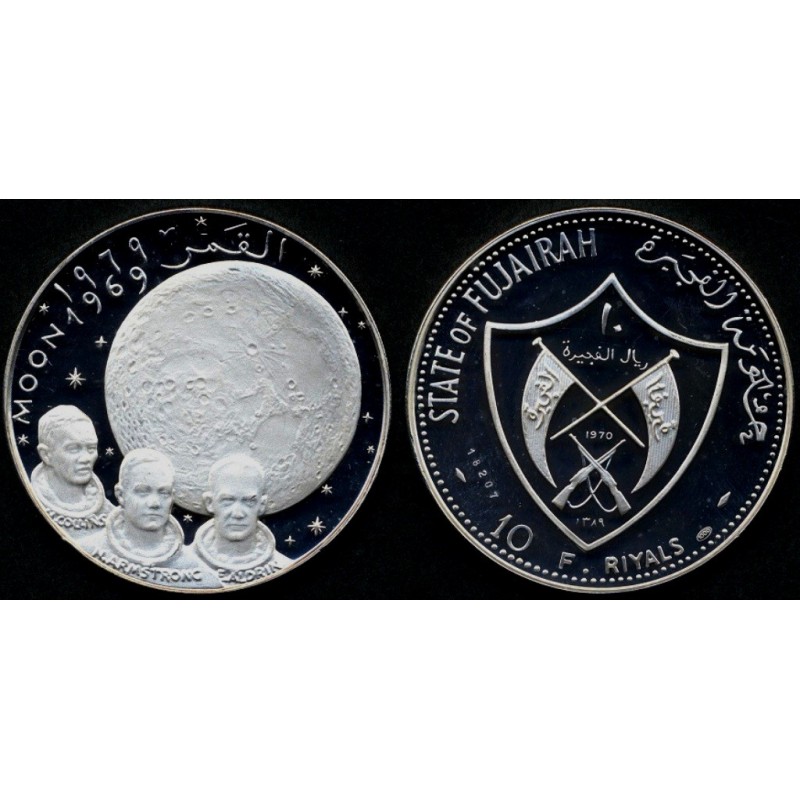 FUJAIRAH 10 Riyals 1970 APOLLO XI AG PROOF BU