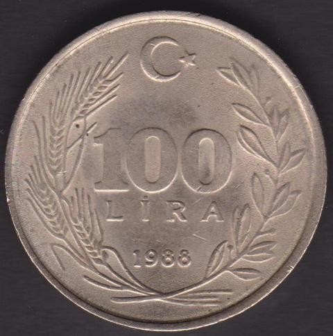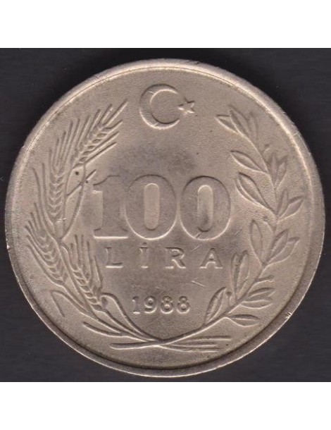 TURKEY 100 Lira 1988 Copper Nickel