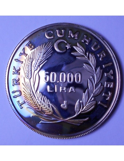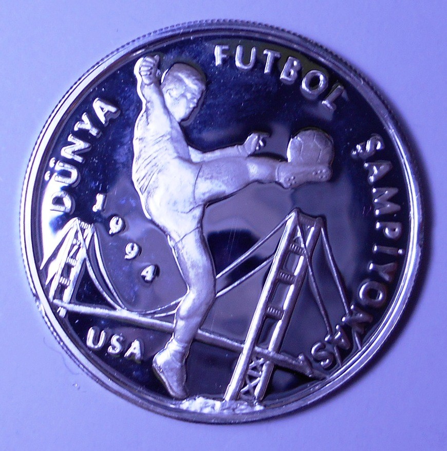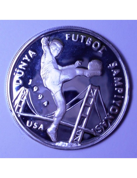 TURKEY 50.000 Lira 1993 World Cup Soccer 1994 AG PROOF rare