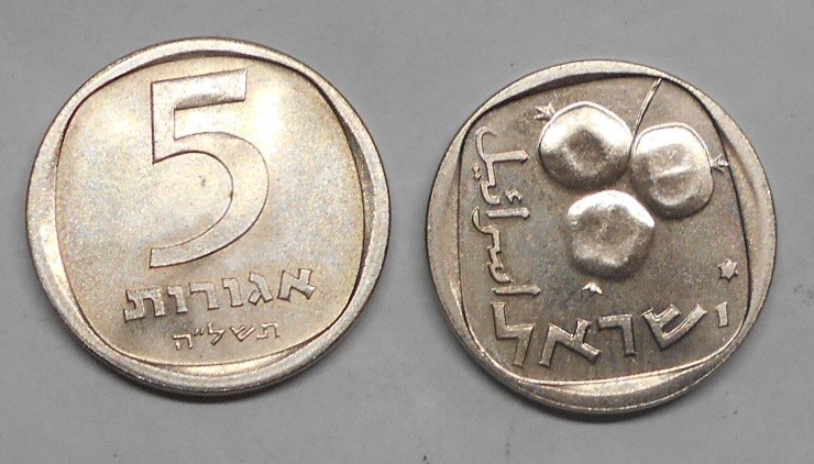 ISRAEL 5 Agorot 1975 Nickel w. star of David