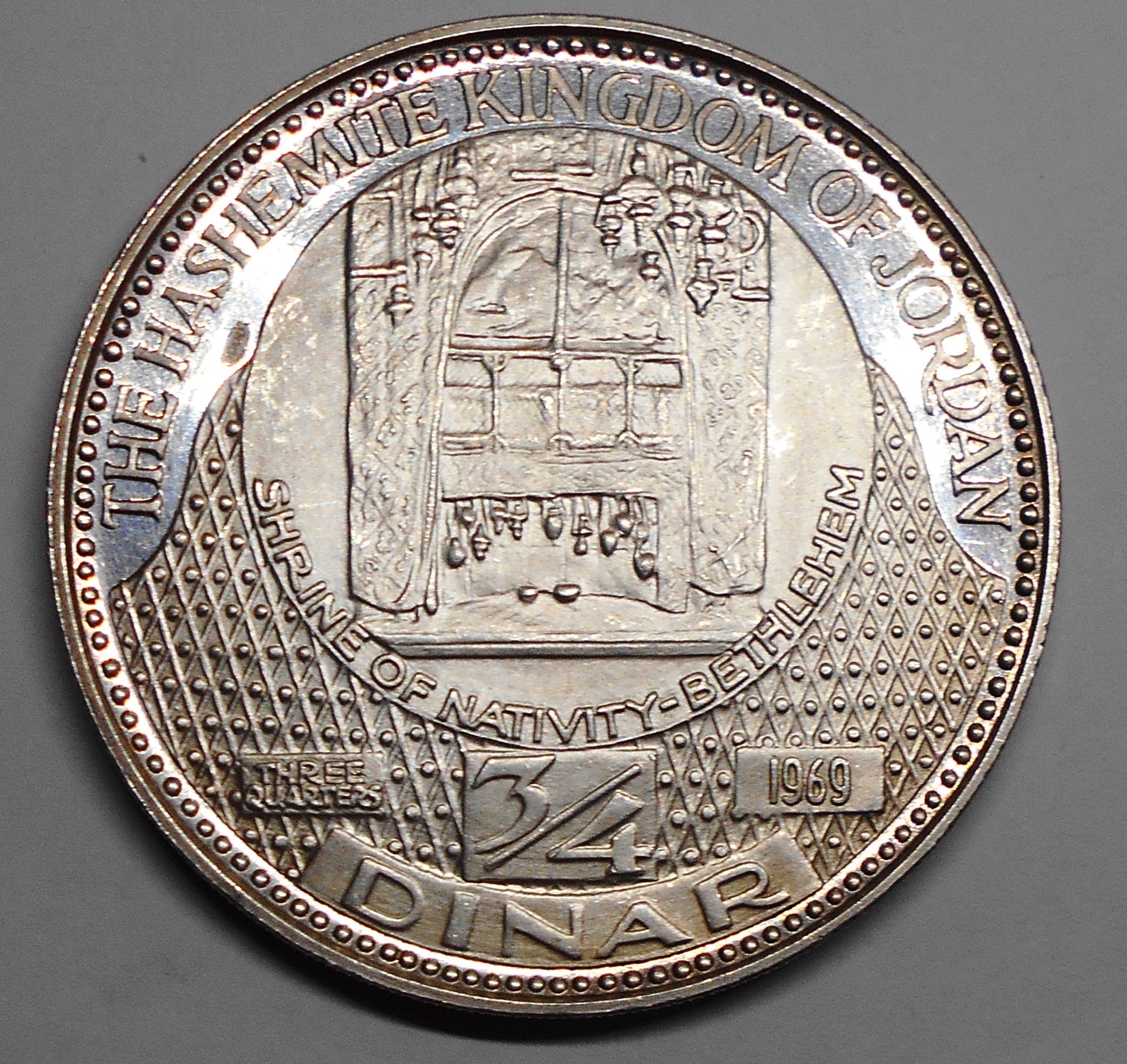 JORDAN 3/4 Dinar 1969 Shrine of the Nativity Bethlehem AG PROOF