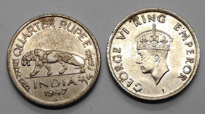 BRITISH INDIA 1/4 Rupee 1947 b