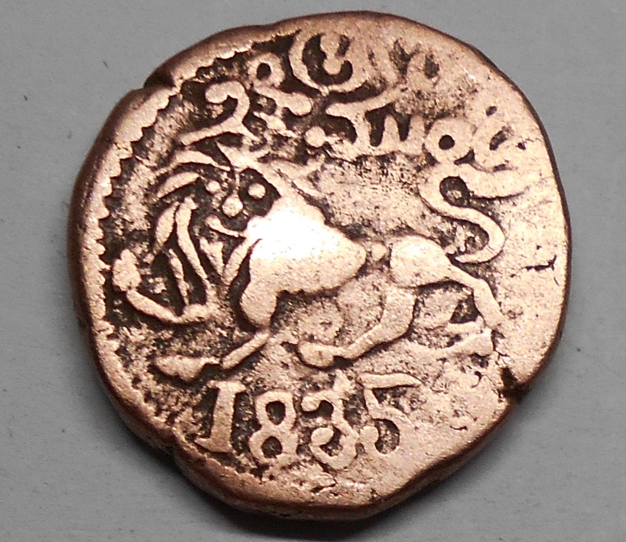 Mysore 20 Cash 1835 Lion