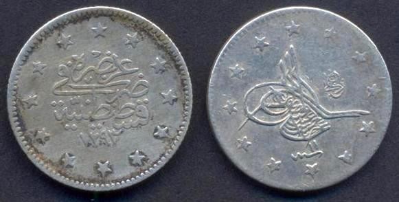 TURKEY 2 Kurush AH 1293/11 (1886) AG