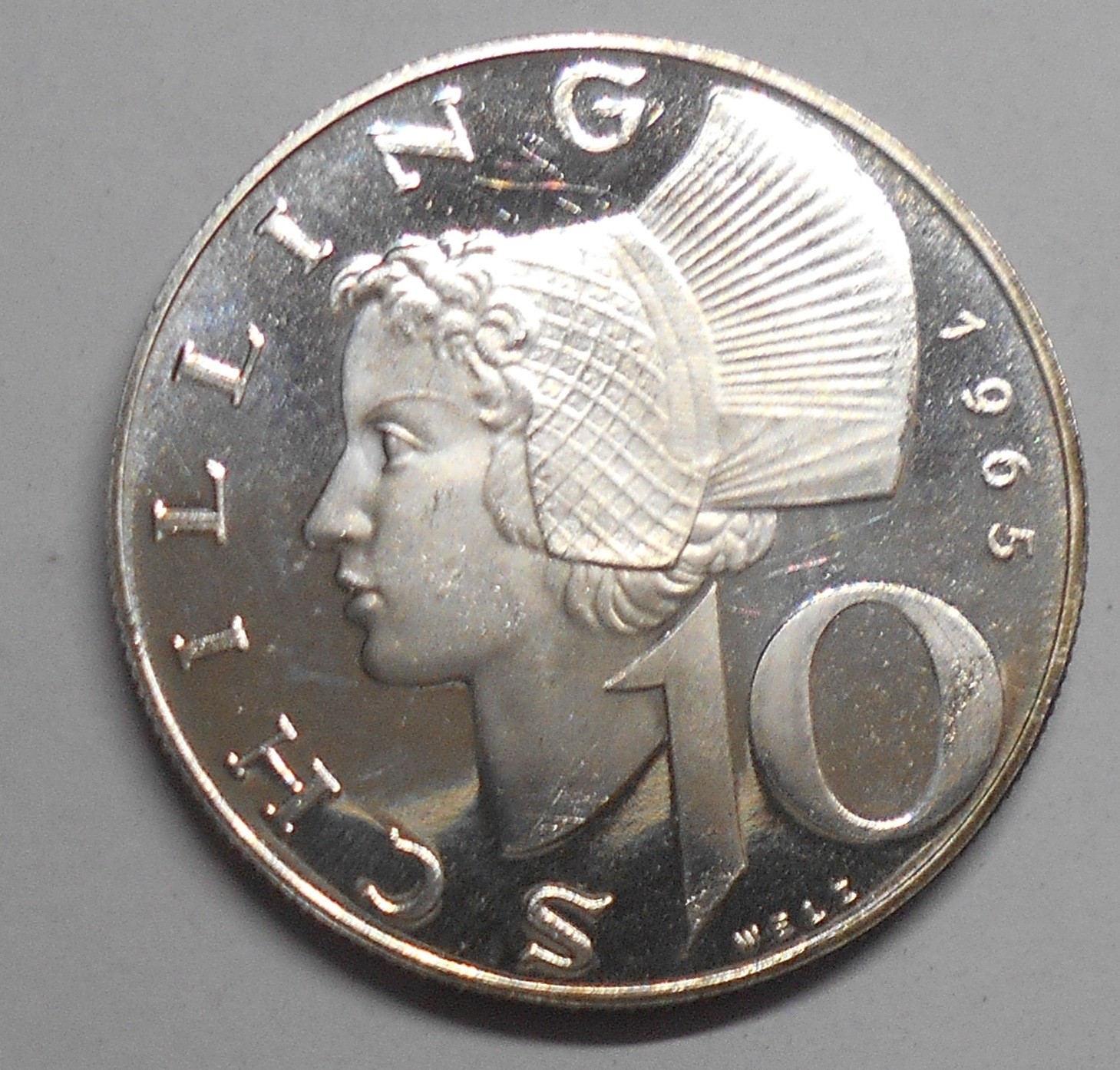 AUSTRIA 10 Schilling 1965 AG PROOF