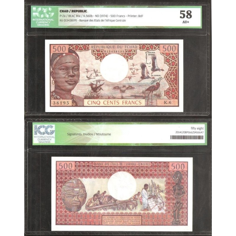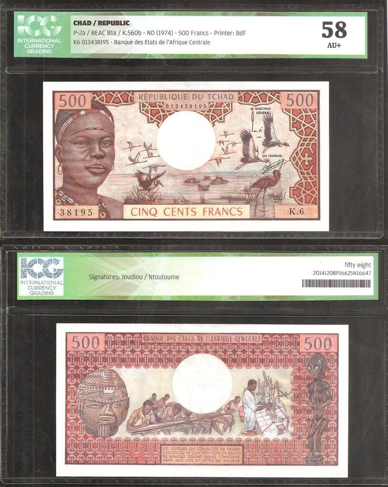 CHAD 500 Francs 1974 ICG Certificate