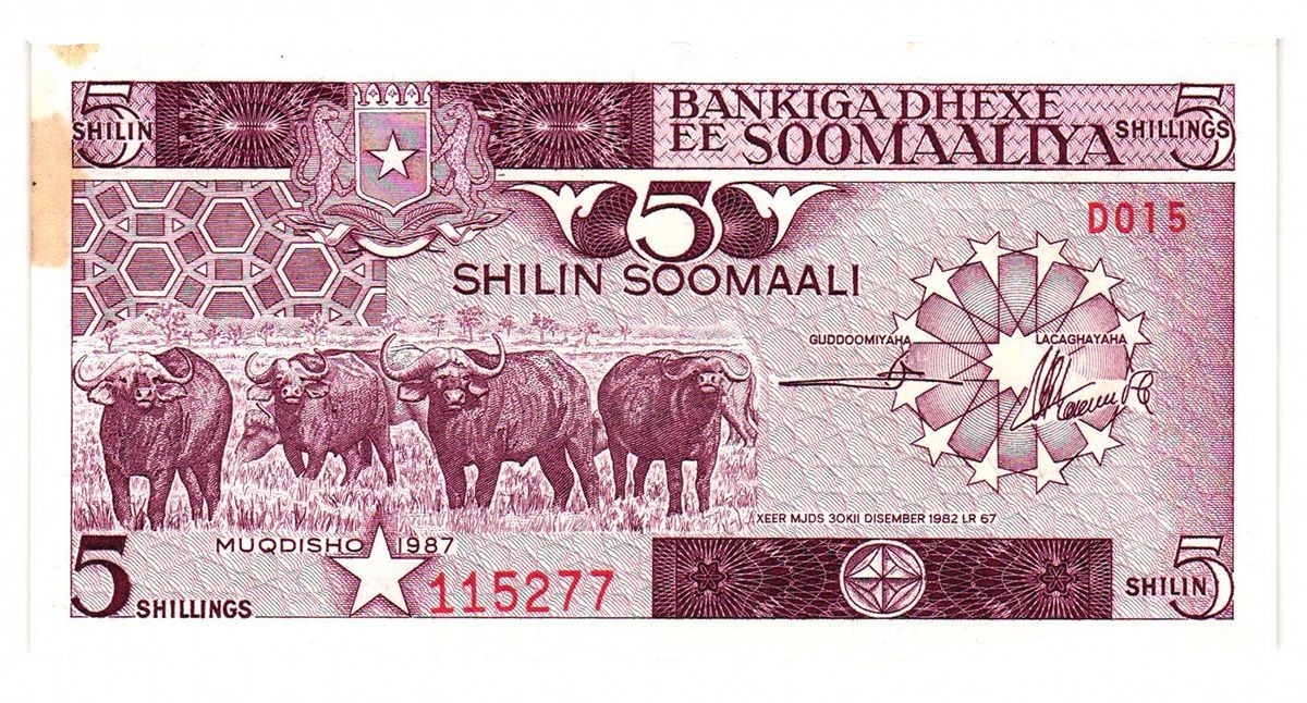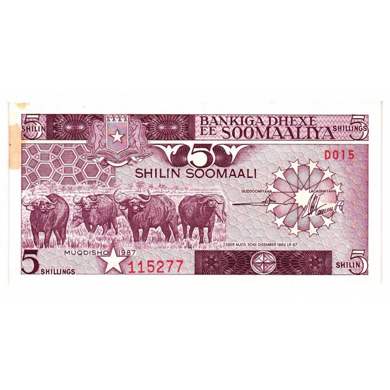 SOMALIA 5 Shillings 1987 Yellow Tone
