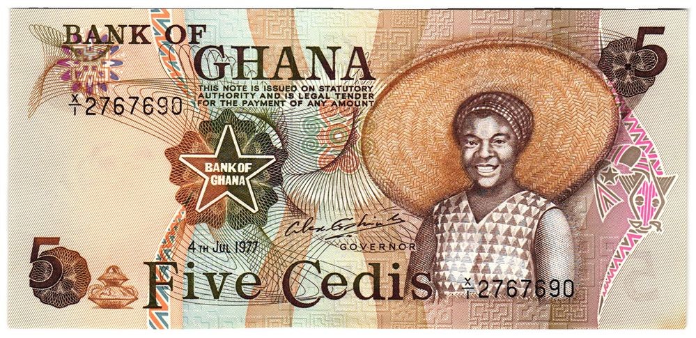 GHANA 5 Cedis 04.07.1977 (Little Toned)