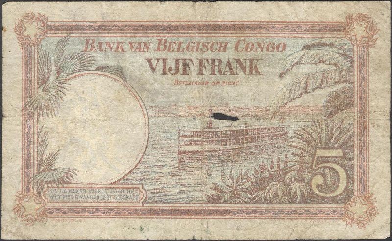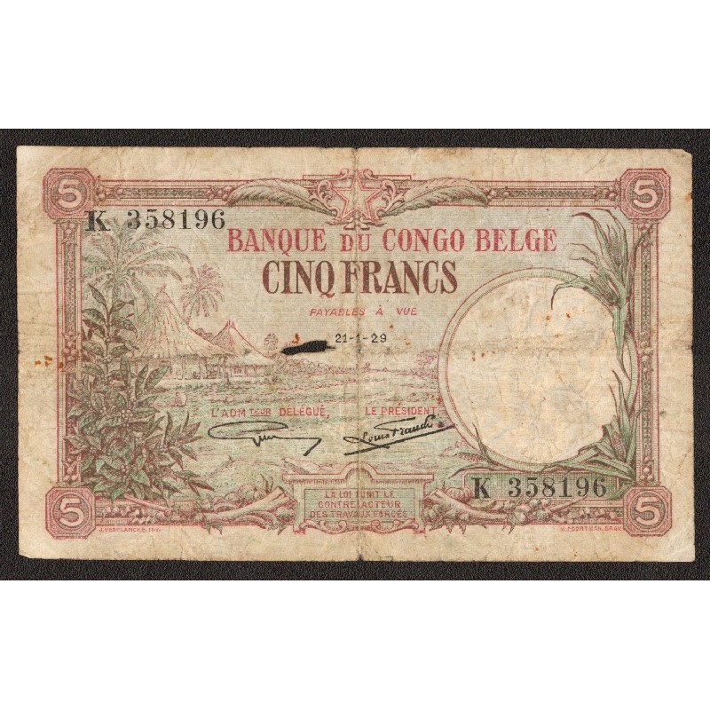 BELGIAN CONGO 5 Francs 21.01.1929