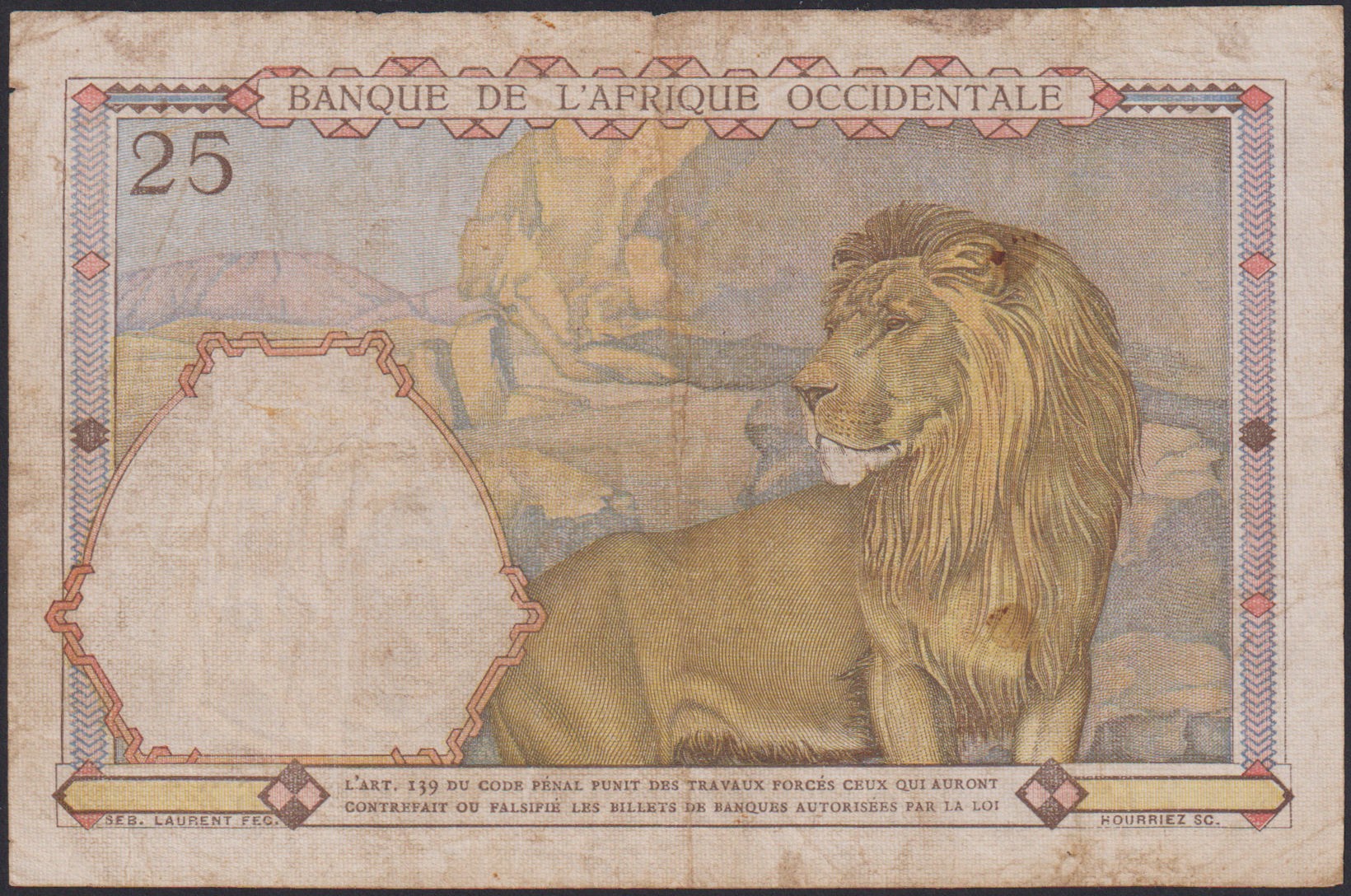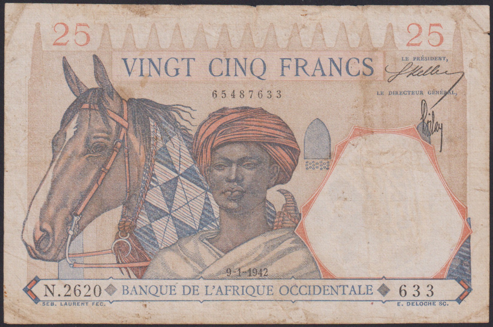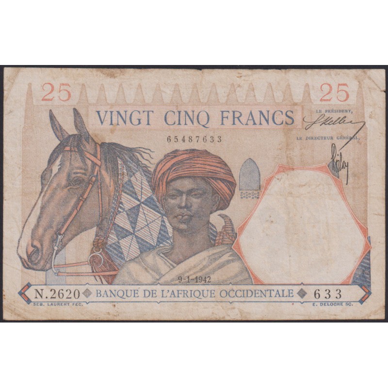 FRENCH WEST AFRICA 25 Francs 09.01.1942