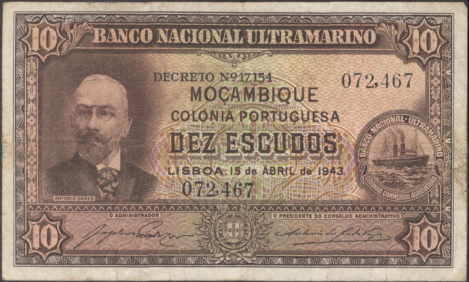 MOZAMBIQUE 10 Escudos 1943