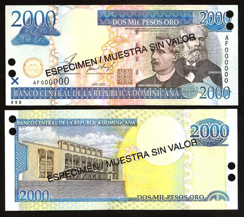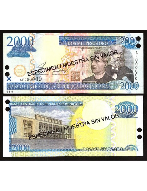 DOMINICAN REPUBLIC 2000 Pesos Oro 2002 SPECIMEN