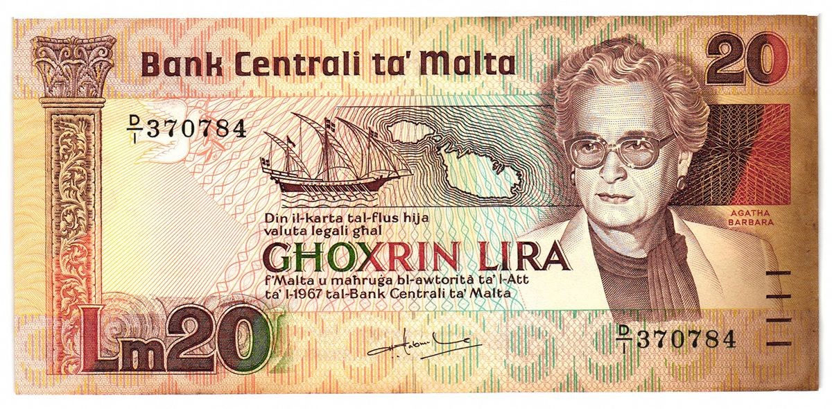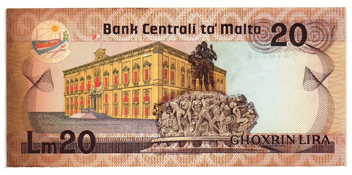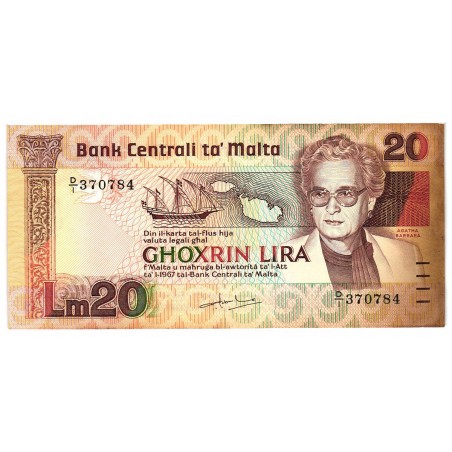 MALTA 20 Lira L.1967 (1986) SEE PHOTO (Toned on the right side)
