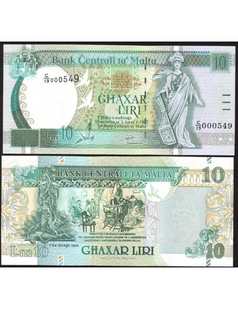 MALTA 10 Liri 1967 (1994) Low Serial