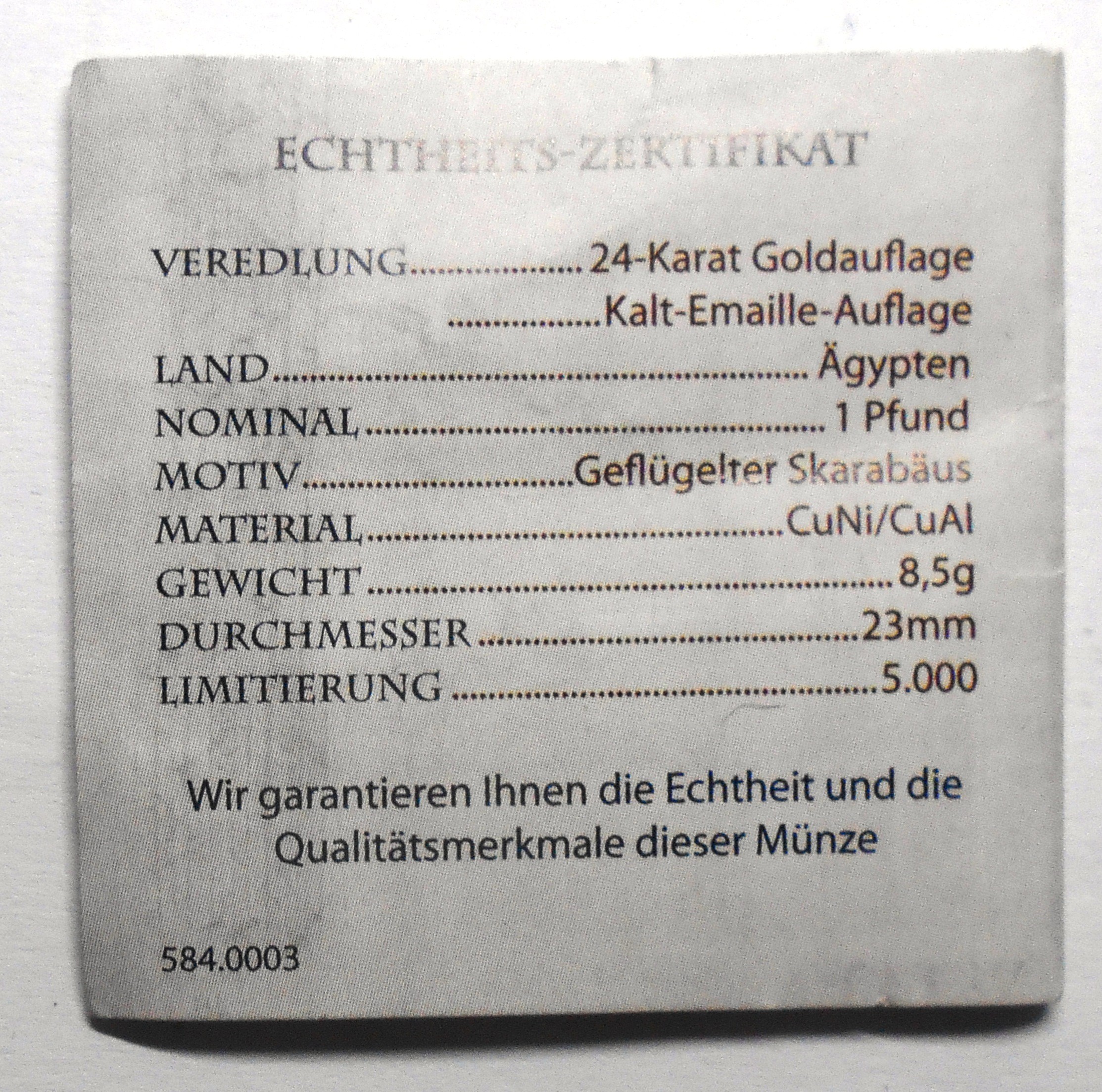 EGYPT 1 Pound 2008 Scarab of Tutanchamen placcato oro