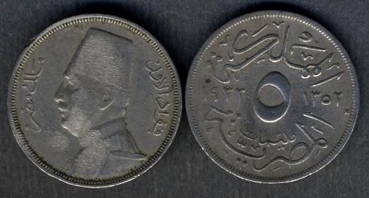 EGYPT 5 Milliemes 1933H Fuad 1°