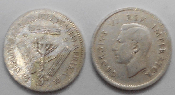 SOUTH AFRICA 3 Pence 1938 AG