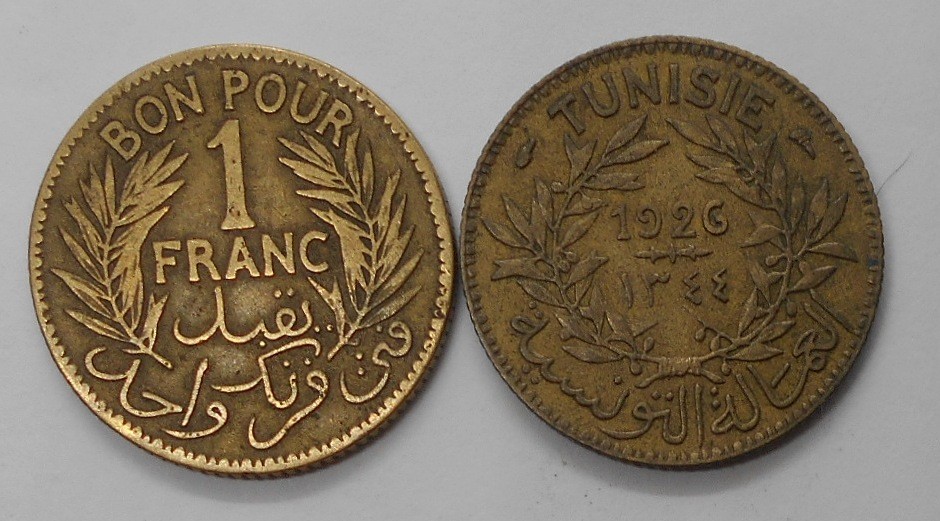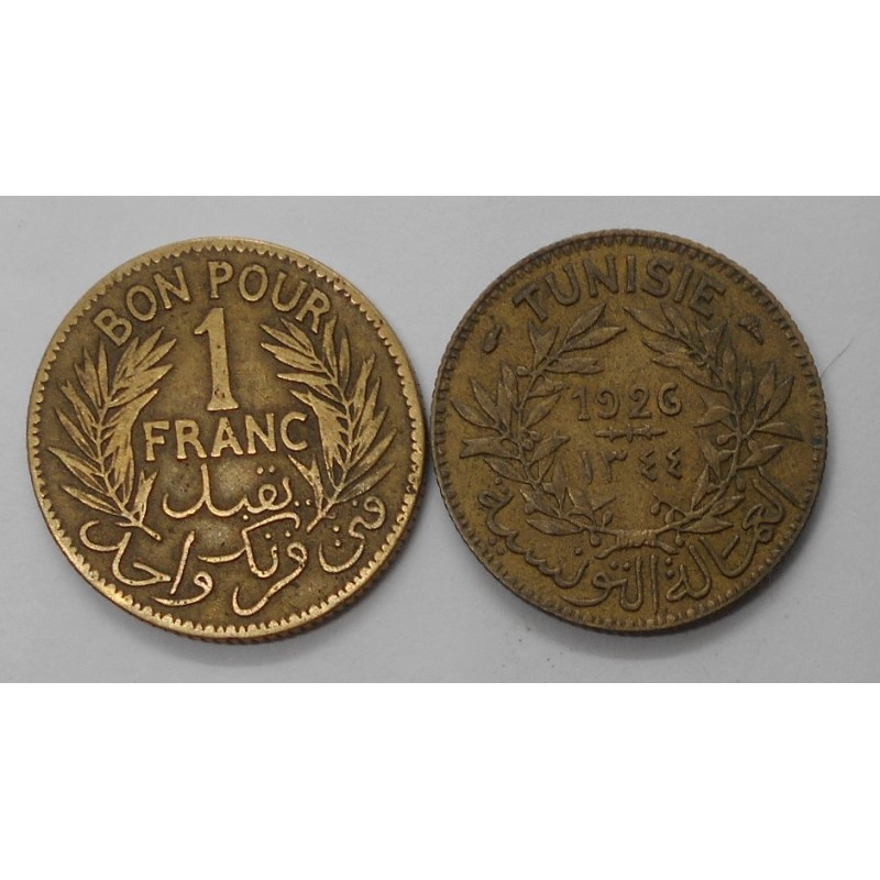 TUNISIA 1 Franc 1926 AH 1344