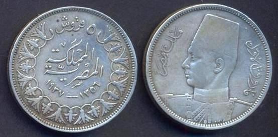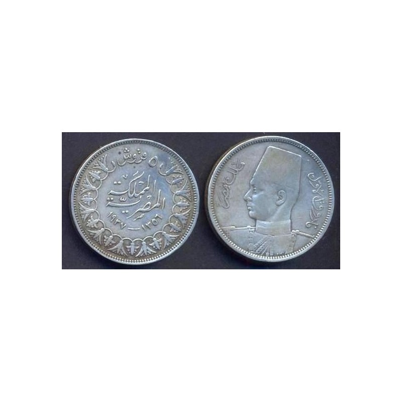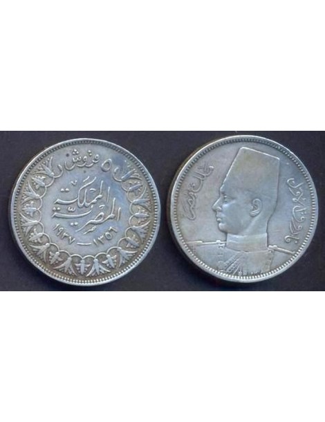 EGYPT 5 Piastres 1937 AG Farouk