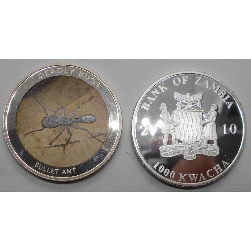 ZAMBIA 1000 Kwacha 2010 Bullet Ant AG PROOF