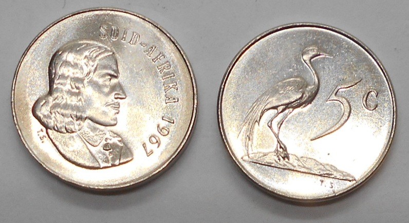SOUTH AFRICA 5 Cents 1967 Afr. J. Riebeeck