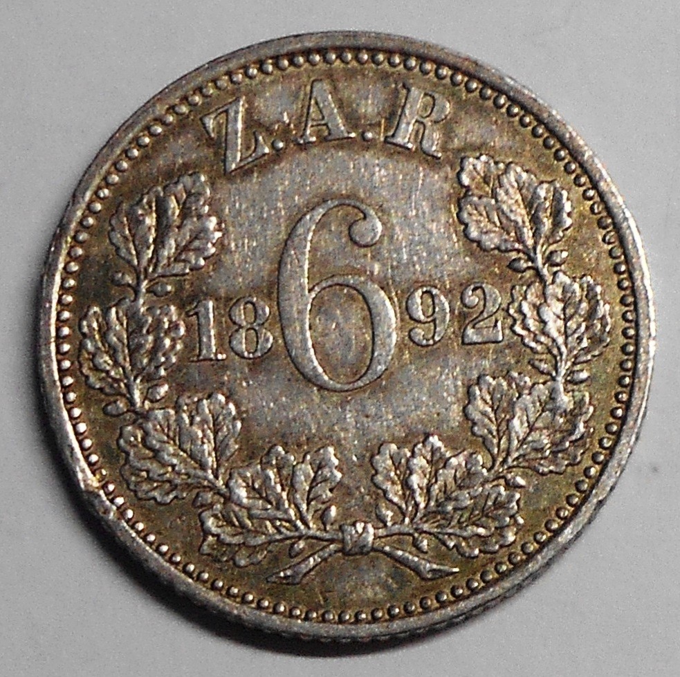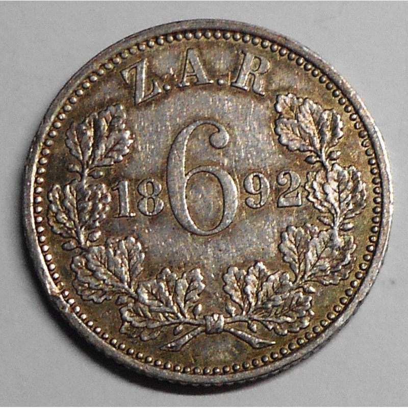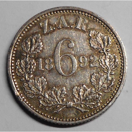 SOUTH AFRICA 6 Pence 1892 AG