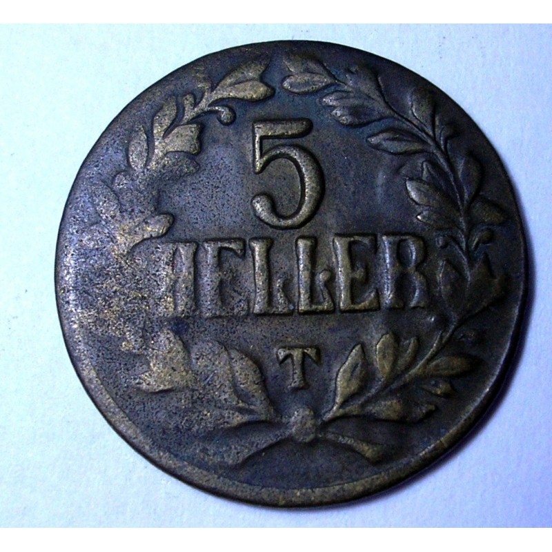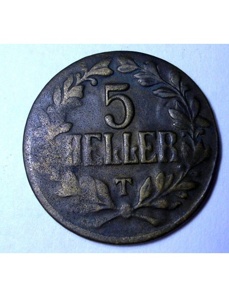 GERMAN EAST AFRICA 5 Heller 1916 T brass