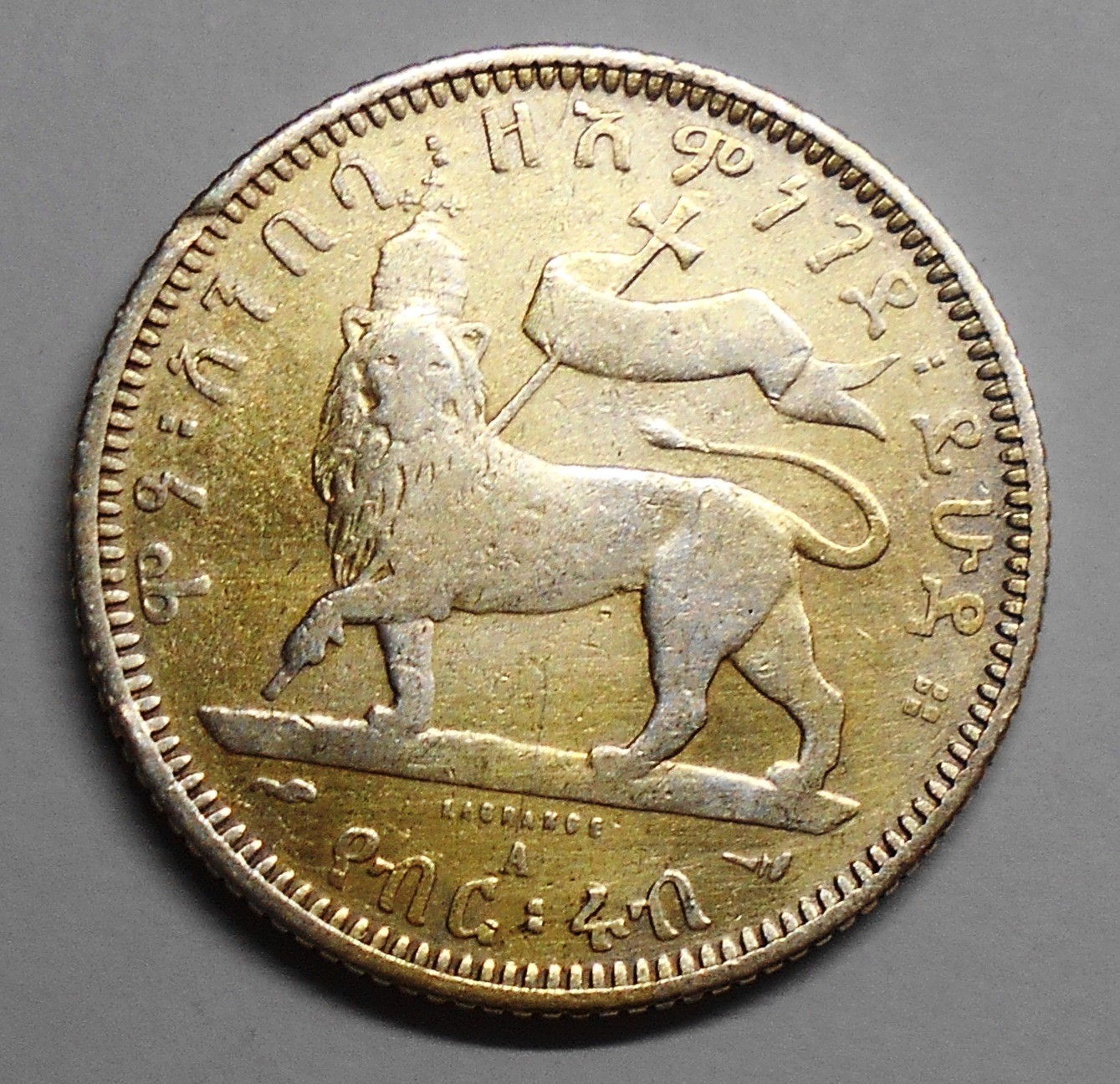 ETHIOPIA 1/4 Birr EE1895 AG Menelik II