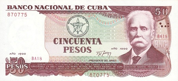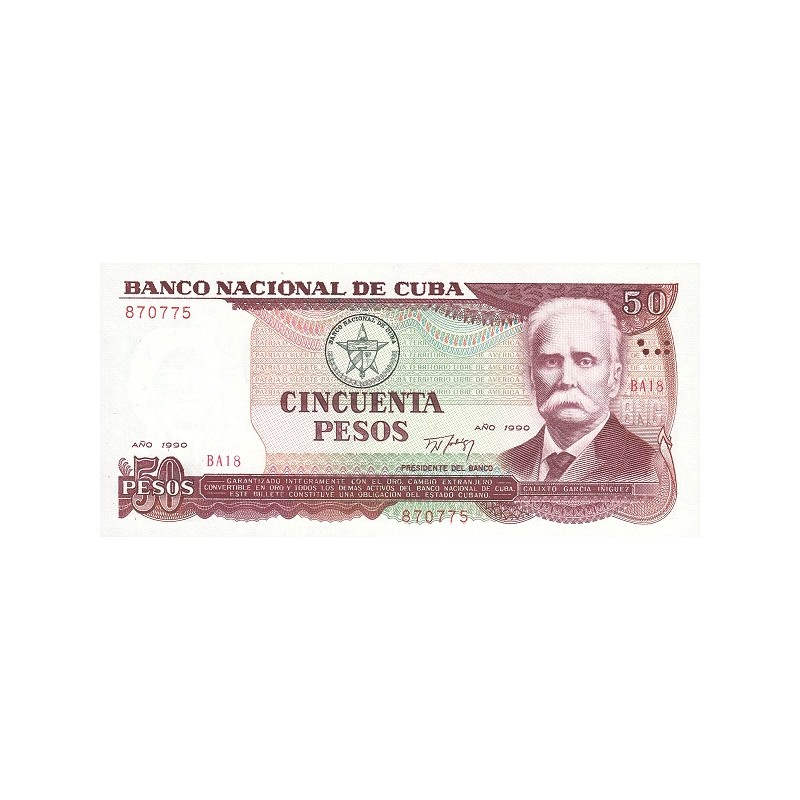 CUBA 50 Pesos 1990 (correct spelling: IÑIGUEZ)