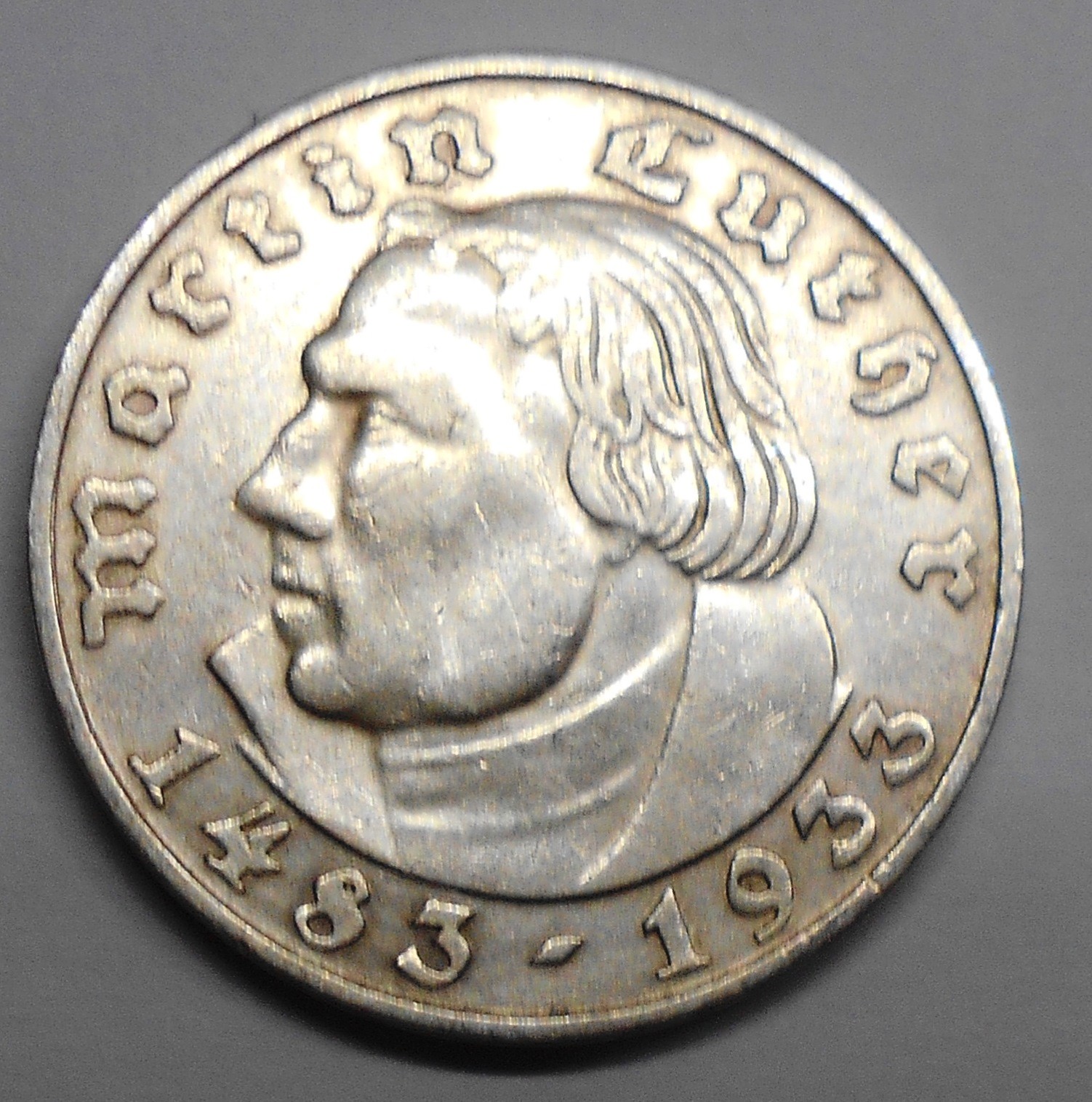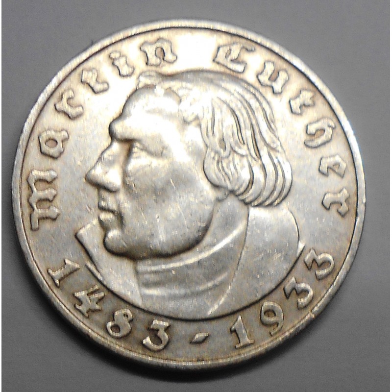 GERMANY THIRD REICH 2 Reichsmark 1933D Martin Luther AG