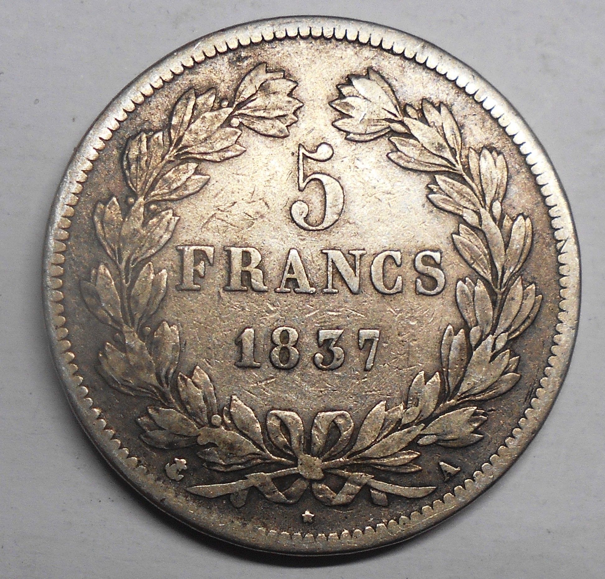 FRANCE 5 Francs 1837 A Louis Philippe I AG