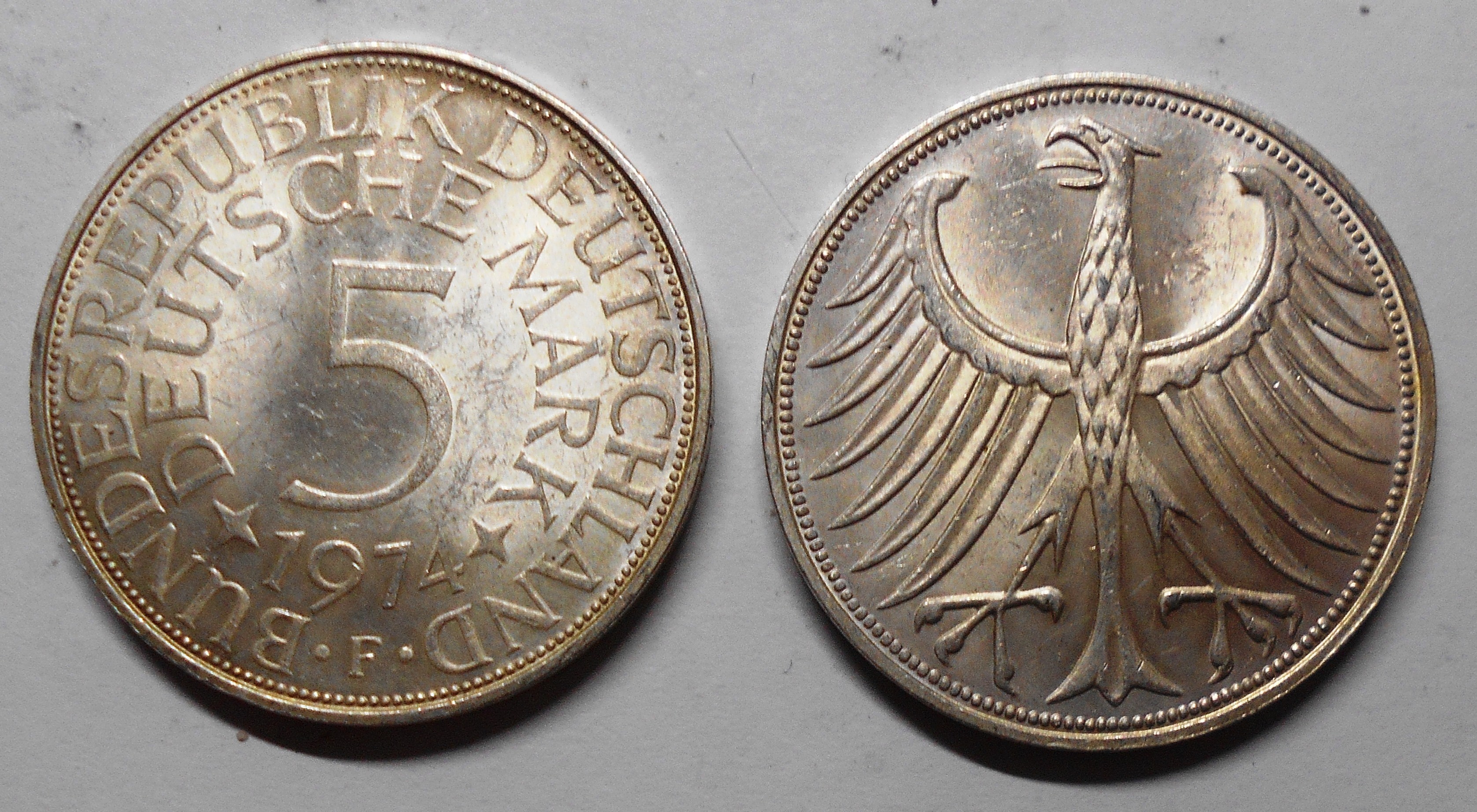 GERMANY FEDERAL REPUBLIC 5 Mark 1974F AG