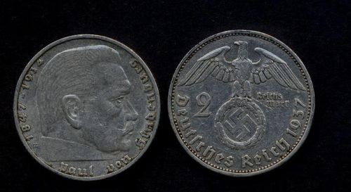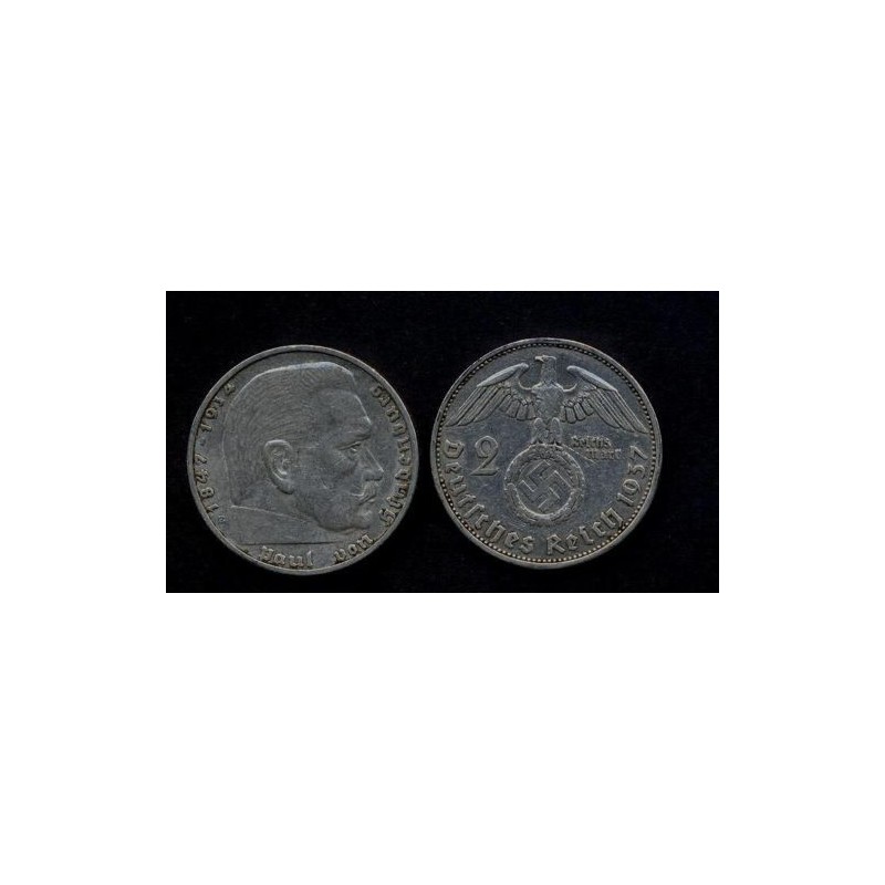 GERMANY THIRD REICH 2 Mark Swastika 1937 G AG