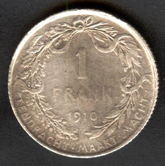 BELGIUM 1 Franc 1910 AG Der Belgen