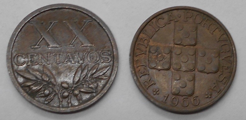 PORTUGAL 20 Centavos 1966