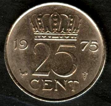 NETHERLANDS 25 Cents 1975