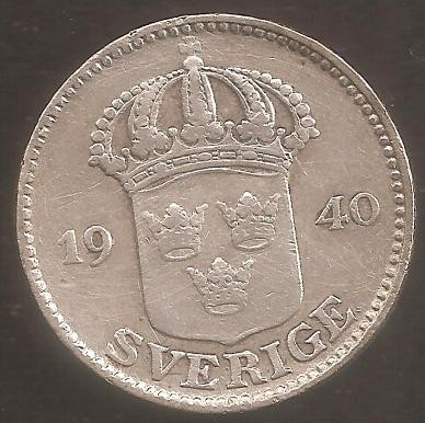 SWEDEN 25 Ore 1940 AG