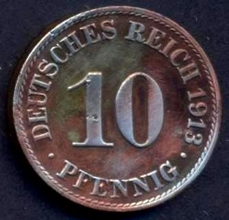 GERMANY EMPIRE 10 Pfennig 1913 A