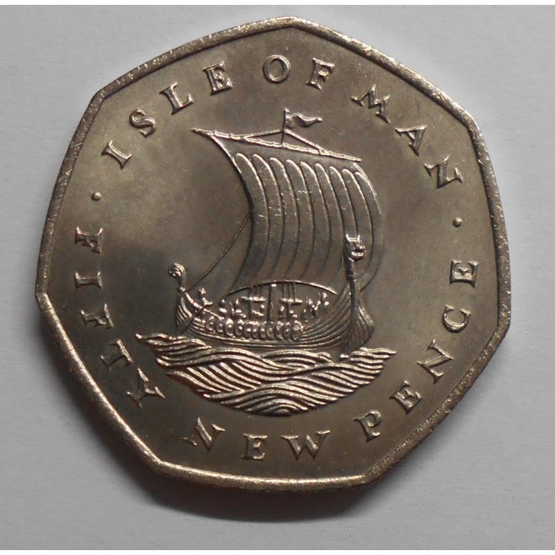 ISLE OF MAN 50 New Pence 1971 Viking Ship