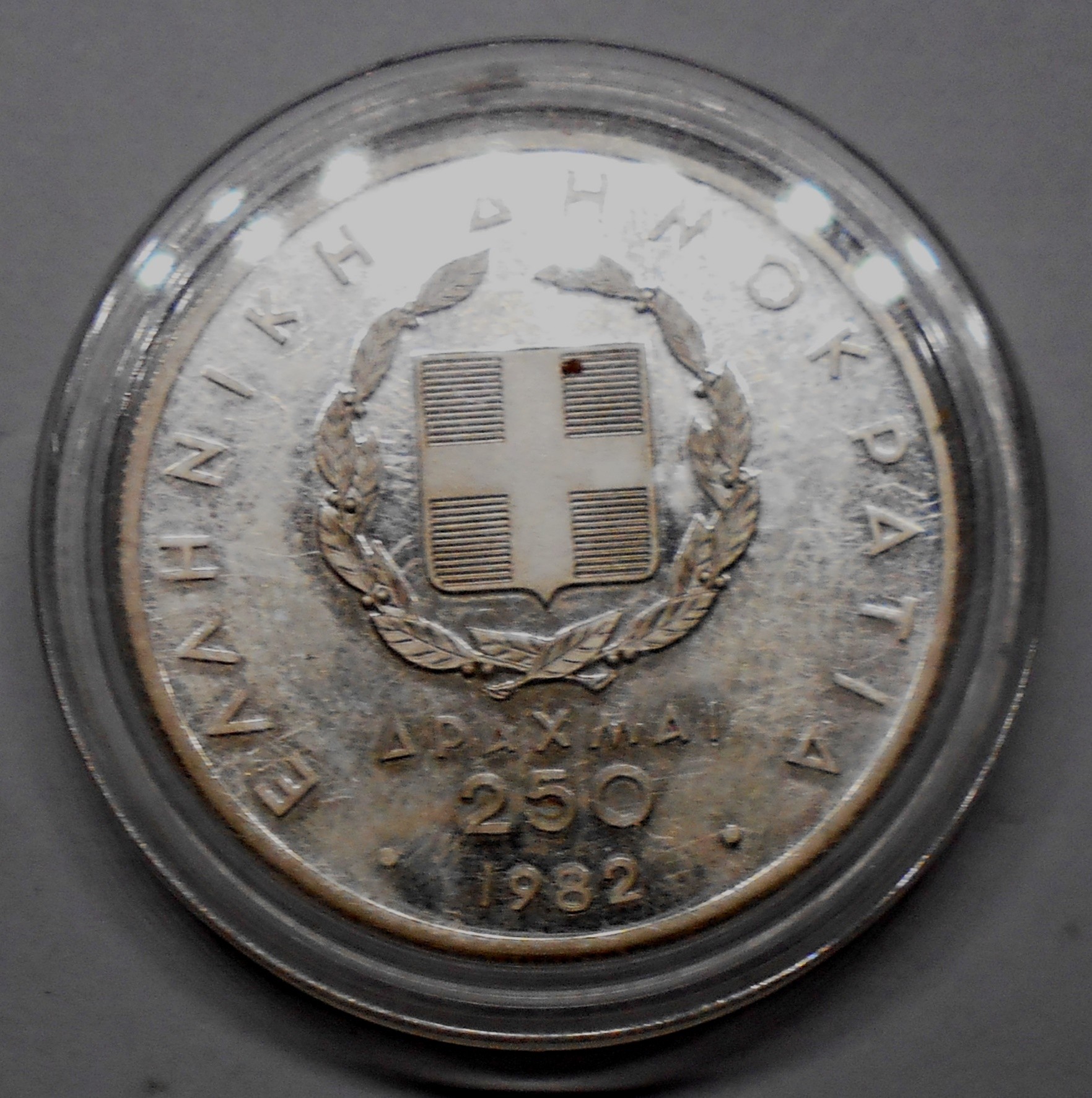 GREECE 250 Drachmai 1982 Discus Throwing AG PROOF