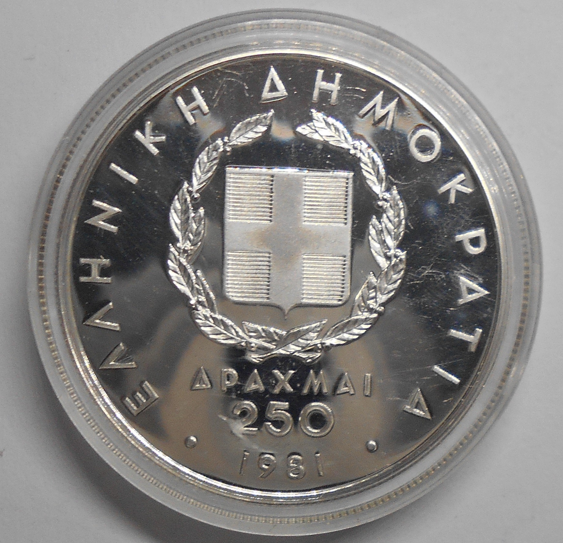 GREECE 250 Drachmai 1981 Javeling Throwing AG PROOF