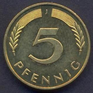 GERMANY FEDERAL REPUBLIC 5 Pfennig 1990 J